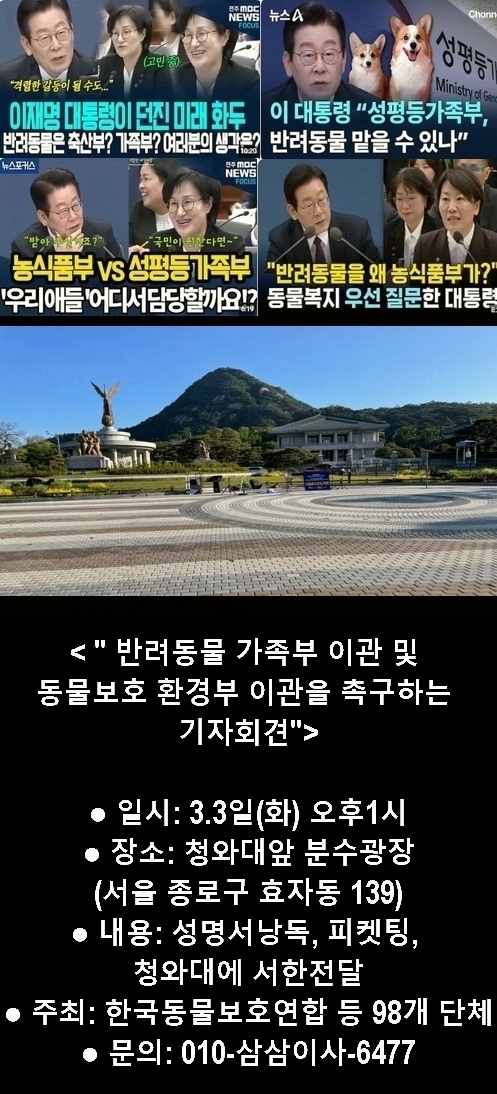 <3.3일(화) "청와대앞, 반려동물 가족부 이관 및 동물보호 환경부 이관을 촉구하는 기자회견">