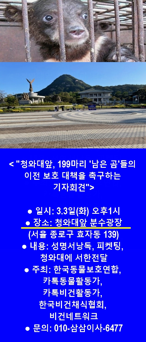 <3.3일(화) "청와대앞, 곰농장 199마리 '남은 곰'들의 이전 보호 대책을 촉구하는 기자회견">