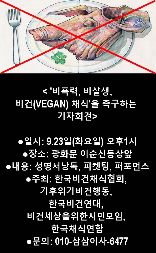 [º¸µµÀÚ·á] 9¿ù 23ÀÏ(È) 'ºñÆø·Â, ºñ»ì»ý, ºñ°Ç(VEGAN) ä½Ä'À» Ã˱¸ÇÏ´Â ±âÀÚȸ°ß |