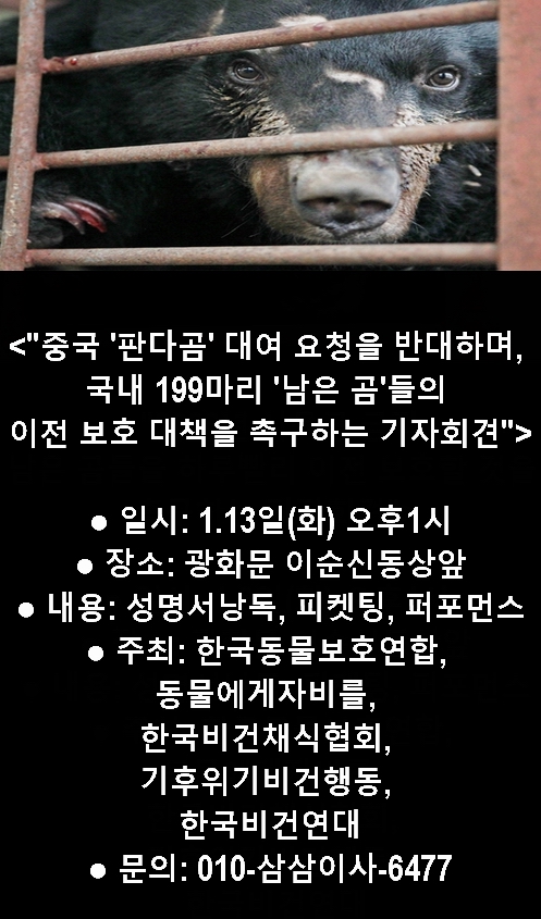 <1.13ÀÏ(È) "Áß±¹ 'ÆÇ´Ù°õ' ´ë¿© ¿äûÀ» ¹Ý´ëÇϸç, ±¹³» 199¸¶¸® '³²Àº °õ'µéÀÇ ÀÌÀü º¸È£ ´ëÃ¥À» Ã˱¸ÇÏ´Â ±âÀÚȸ°ß">