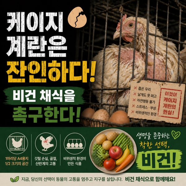 Àΰ£ÀÇ ½Ä޶§¹®¿¡ ¸¹Àº µ¿¹°µéÀÌ ³¡¾ø´Â °í¹®°ú °íÅëÀ» ´çÇϰí ÀÖ´Ù. µ¿¹°À» ±«·ÓÈ÷°Å³ª Á×ÀÌÁö ¾Ê´Â ºñ°Ç(vegan) ä½ÄÀ» ½ÇõÇÒ °ÍÀ» ´Ù½Ã Çѹø Ã˱¸ÇÑ´Ù.
