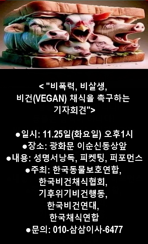 Á¾Â÷º°ÁÖÀÇ(Speciesism) ´ë½Å ºñ°Å´ÏÁò(Veganism)À» ¼±ÅÃÇÏ¿©, Æø·Â°ú »ì»ýÀÌ ¾ø´Â ¼¼»óÀ» ¸¸µé¾îÁÙ °ÍÀ» Ã˱¸ÇÑ´Ù.