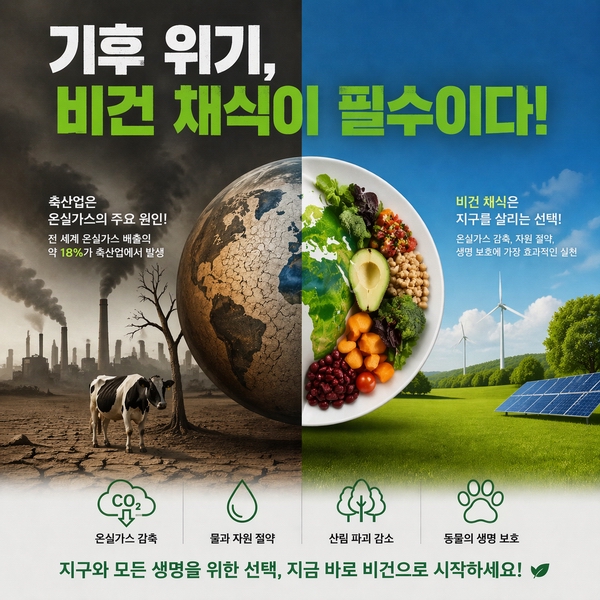 ÀÌÁ¦ ºñ°Ç(VEGAN) ä½ÄÀº ¼±ÅÃÀÌ ¾Æ´Ï¶ó ÇʼöÀÌ´Ù. ±âÈÄÀ§±â ½Ã´ë¿¡ ¿ì¸® °³ÀÎÀÌ ÇÒ ¼ö ÀÖ´Â °¡Àå ¼Õ½±°íµµ °¡Àå È¿°úÀûÀÎ ¹æ¹ýÀº ºñ°Ç ä½ÄÀ» ½ÇõÇÏ´Â °ÍÀÌ´Ù. Áö±¸ À§±â, ±âÈÄ À§±â ±Øº¹À» À§ÇÑ ºñ°Ç ä½ÄÀ» Ã˱¸ÇÑ´Ù.