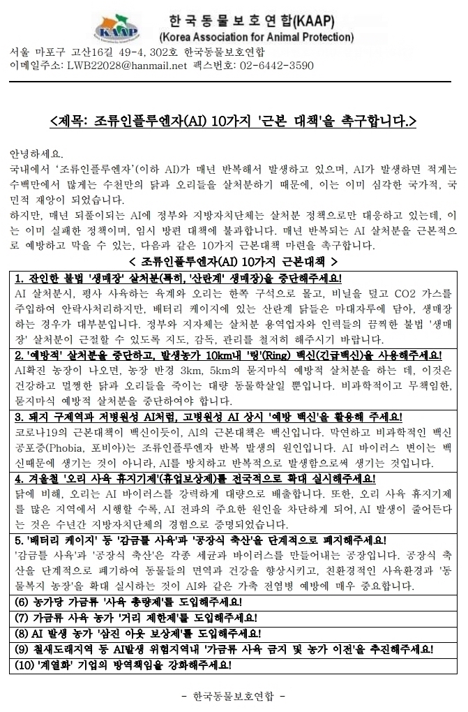 Çѱ¹µ¿¹°º¸È£¿¬ÇÕ(Korea Association for Animal Protection) | ÀüÈ:02)707-3590 | À̸ÞÀÏÁÖ¼Ò: LWB22028@hanmail.net